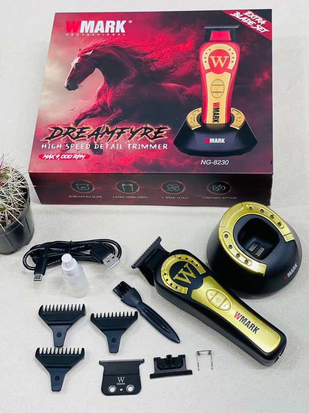 لوازم جانبی: 3 شانه راهنما (1/2/3 میلی متر)، پایه شارژ، برس تمیز کننده، روغن روان کننده، کابل USB نوع C، و 1 مجموعه تیغه اضافی، کشش فنر و سر چرخان برای تعویض